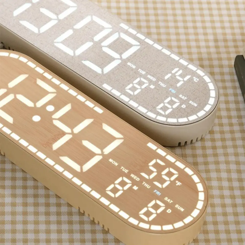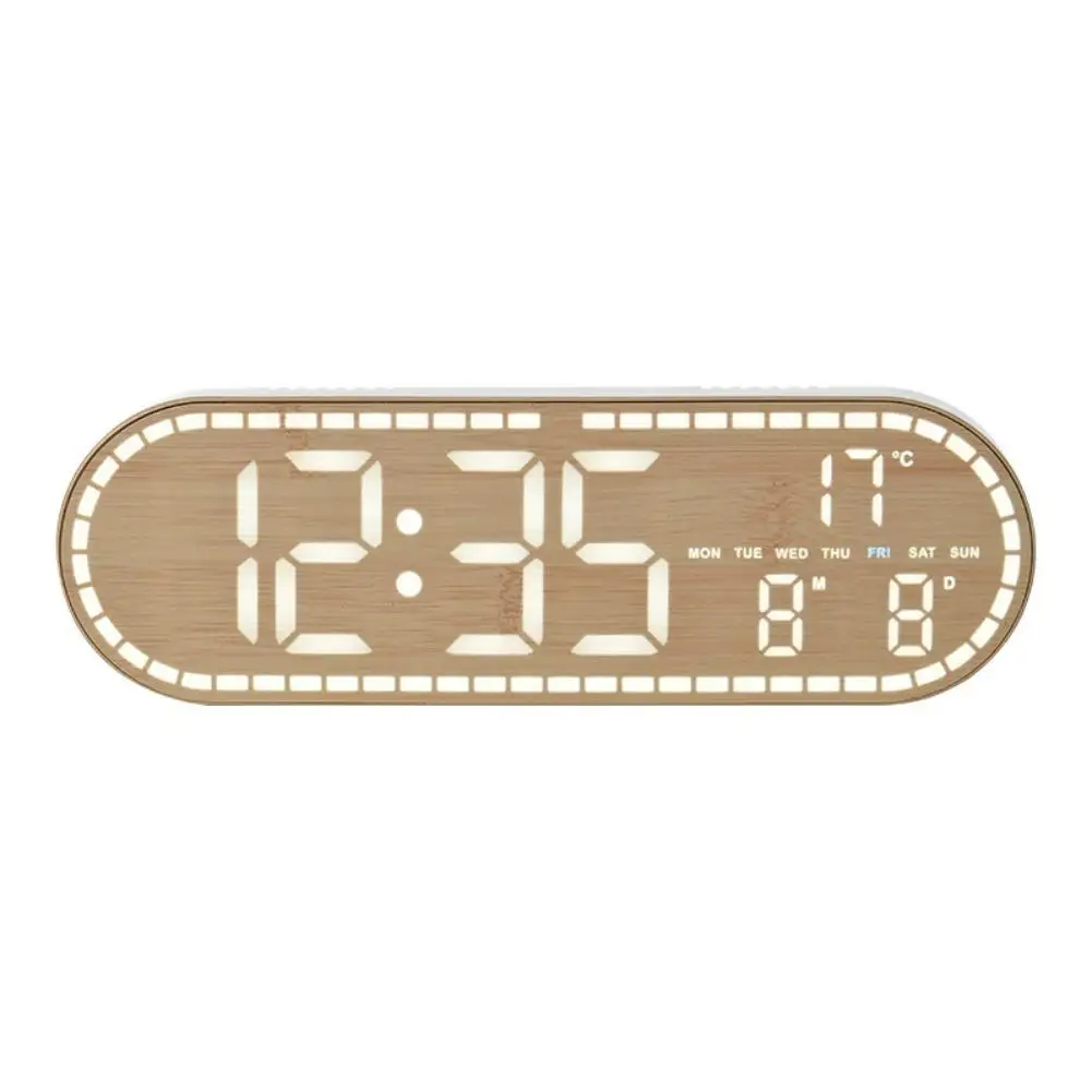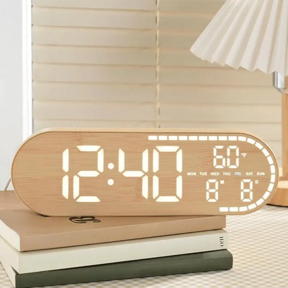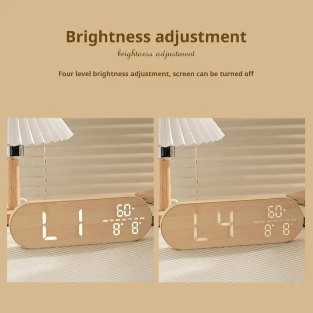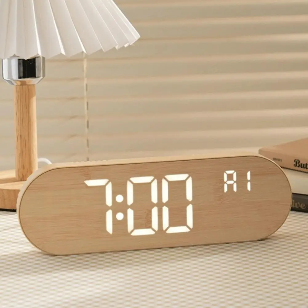 4. Superior Construction and Finish: Crafted from premium ABS material and adorned with a refined wood grain style, this digital clock elegance. Ideal for any desk, bedside table, or wall, it won't take up much space.